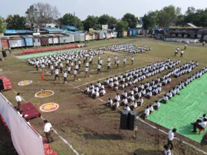 सुबह साढ़े आठ बजे नगर के मिडिल स्कूल मैदान में स्वयंसेवकों का एकत्रीकरण हुआ। सबसे पहले प्रकट कार्यक्रम आयोजित किया गया, जिसमें स्वयंसेवकों ने व्यायाम योग, आसन और क्षमता प्रदर्शन कर अनुशासन और समर्पण का परिचय दिया।